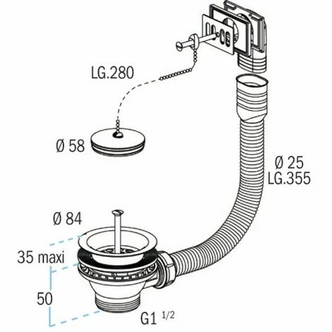 à bouchon à chainette, avec trop plein, perçage cuve 60