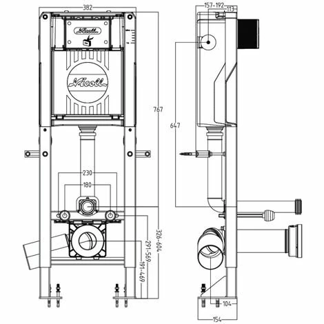 Avec pipe d’Ă©vacuation 100 mm orientable, tube de rinçage, tube d’alimentation et manchon d’Ă©vacuation en PVC de 300 mm