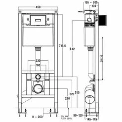 - Mécanisme à double câble double volume, pipes coudées et droites PVC NF Me Ø 100 mm ajustable en profondeur, manchon d’évacuation, tube de rinçage et tiges filetées rallongés (L=300 mm),