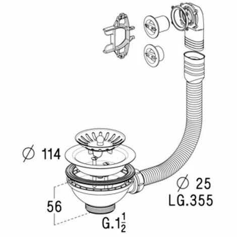 - FICHE Evier l BONDES A PANIER Ø114 POUR ÉVIER TOUS MATERIAUX 1 BAC DE PER°AGE Ø90 réf 0204123
