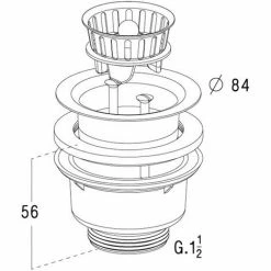 - Bonde à panier manuelle Ø84 mm pour évier de perçage Ø60 mm, grès ou synthèse, plateau et panier en inox 18/10.