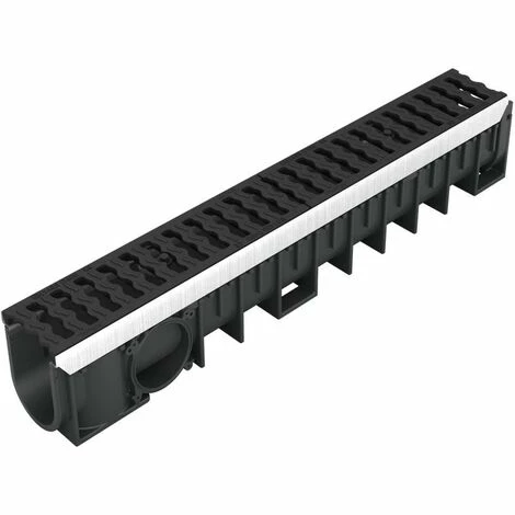 - DESCRIPTION DÉTAILLÉE Caniveau KENADRAIN HD en polypropylène noir longueur 1 mètre largeur 100 à feuillures acier galvanisé avec 2 grilles fonte à encastrement classe C250.