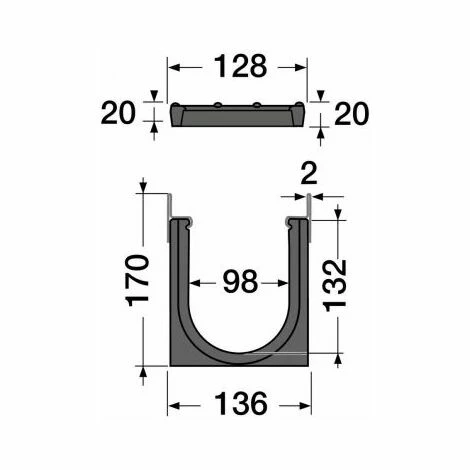 - – Corps du caniveau en résine polypropylène épais muni de renforts latéraux apportant une grande stabilité de pose.