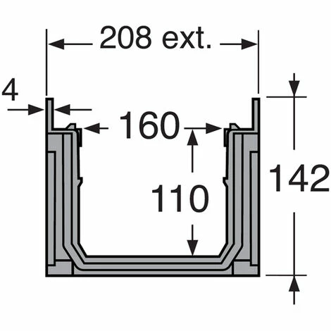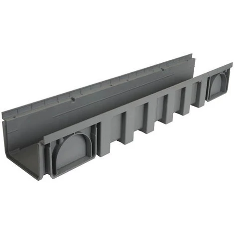 - DESCRIPTION DÉTAILLÉE Caniveau CONNECTO avec feuillure, longueur 1m, largeur de 200 mm en polypropylène gris avec assemblage par emboîtement mâle-femelle avec blocage.