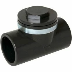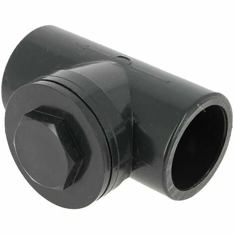 - Té femelle-femelle Ø50 à piquage 90° muni d’un bouchon dévissable avec joint et d’un clapet avec joint.