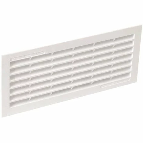 - Grille rectangulaire de ventilation entièrement injectée en polystyrène blanc.