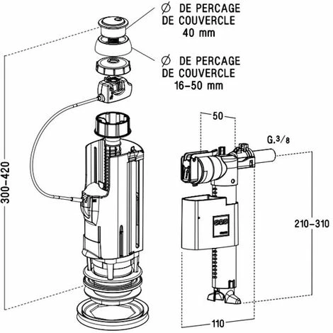Mécanisme double volume à cable Eco concept 3V102 avec robinet flotteur