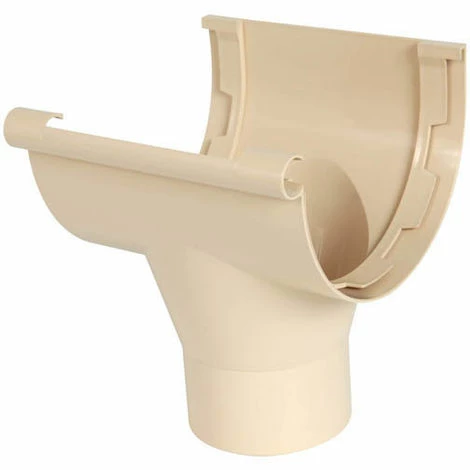 - Naissance centrale à coller en PVC sable pour gouttière de 33 et tube de descente Ø100.