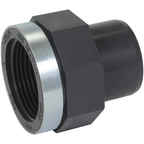 - Permet de raccorder un tube ou raccord en PVC à des pièces en PVC et métalliques (laiton, fonte, inox, acier).