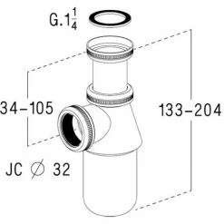 - Siphon lavabo laiton chromé brillant, réglable en hauteur, culot démontable, sortie joint conique Ø32.