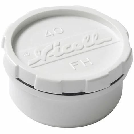 - Pièce de couleur blanche mâle Ø40 en deux parties munie d’un bouchon fileté étanche.