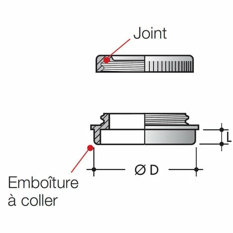 - Tampon de visite mâle-femelle Ø75 en deux parties munie d’un bouchon fileté étanche.