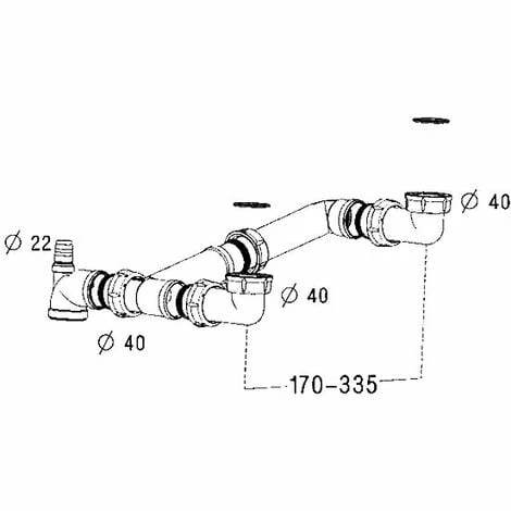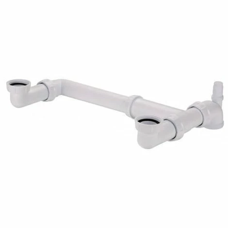 Tubulure de raccordement évier universelle, gain de place, pour éviers 2 cuves égales ou décalées.
