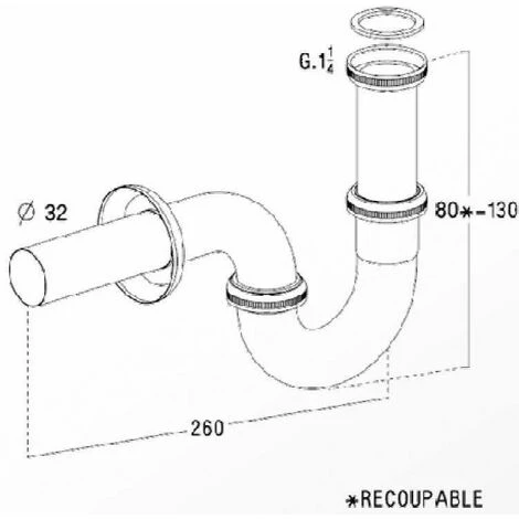 Fonction : Siphon forme « P » pour lavabos, vasques et bidets en laiton chromé Description :