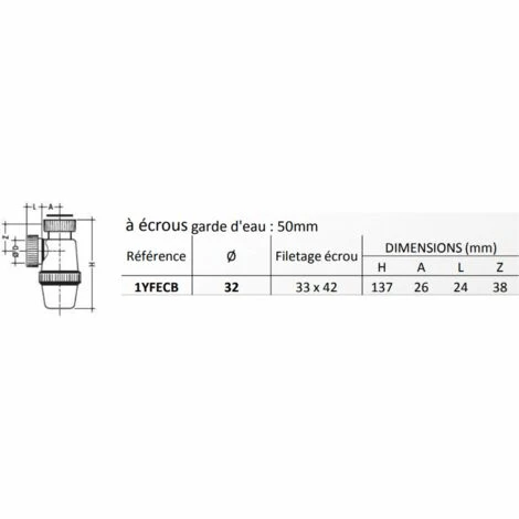 – Ces siphons se raccordent aux appareils sanitaires par un Ă©crou Ă visser (33 x 42 ou 40 x 49) et au rĂ©seau eaux usĂ©es par un Ă©crou avec joint amĂ©ricain.