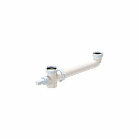 Tubulure de raccordement pour éviers 2 cuves égales, avec prise machine à laver, écrous ergonomiques.